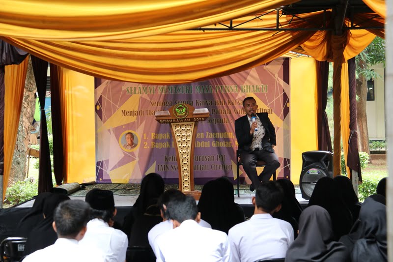 Disamping itu ketua umum HMJ Fatwa AlKautsar juga menyampaikan, sebelum acara PAB ada acara purnabakti kepada dosen yg telah berjasa, yang akan memasuski masa pensiunnya. Drs. H. Aen Zaenudin, MA dan Drs. H. Abdul Ghofar, MA Dan tahlilan dan Doa bersama untuk Almarhum, Drs. Iding Wahidin, M. Pd Dosen PAI yang telah mendahului kita.