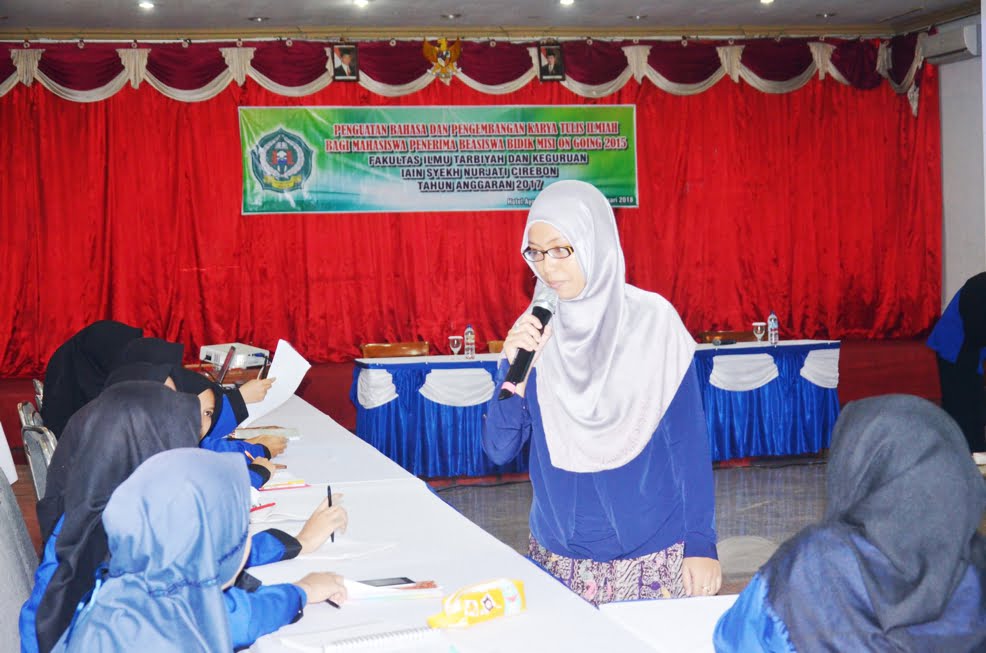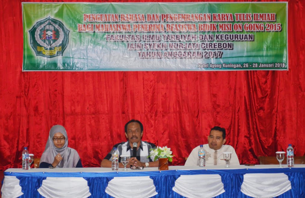 Kuningan (26/02), Fakultas Ilmu Tarbiyah dan Keguruan (F-ITK) IAIN Syekh Nurjati Cirebon menggelar kegiatan “Penguatan Bahasa dan Pengembangan karya Tulis Ilmiah Bagi Mahasiswa Penerima Beasiswa Bidikmisi On Going 2015” bertempat di Hotel Ayong Linggarjati Kuningan. Kegiatan tersebut berjalan selama 3 hari dan dihadiri 52 peserta bidikmisi, sebagai penanggung jawab kegiatan Dr. Nuryana, M.Pd. (Wakil Dekan III F-ITK), kegiatan tersebut dihadiri tamu undangan: Miss Talia ( as Tutor from America), Miss Sirniawati, MA (as Tutor who graduated from New Zeland University), Dr. H. Suklani, M.Pd (Wadek II F-ITK), dan Dr. Nuryana, M.Pd (Wadek III F-ITK).