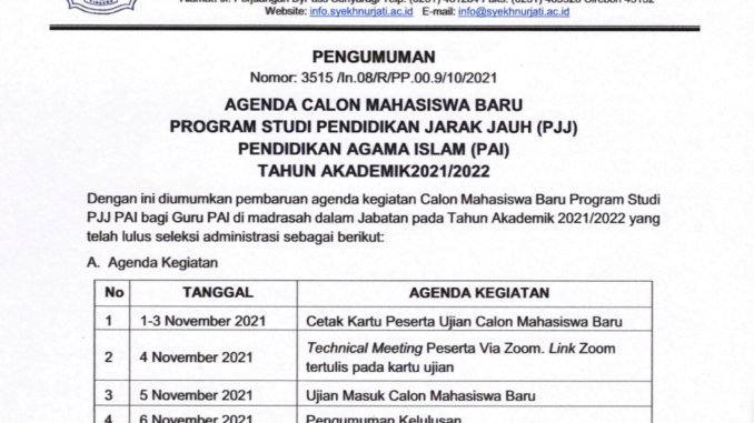 Pengumuman Agenda Calon Mahasiswa Baru 1 November 2021 arifin Pengumuman 0 Unduh Dokumen Agenda Calon Mahasiswa Baru PJJ PAI01112021110136