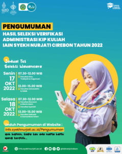PENGUMUMAN HASIL SELEKSI VERIFIKASI ADMINISTRASI KIP KULIAH IAIN SYEKH NURJATI CIREBON TAHUN 2022 12 Oktober 2022 arifin Informasi, Pengumuman 0 UNDUH PENGUMUMAN : PENGUMUMAN HASIL SELEKSI VERIFIKASI ADMINISTRASI KIP KULIAH 2022
