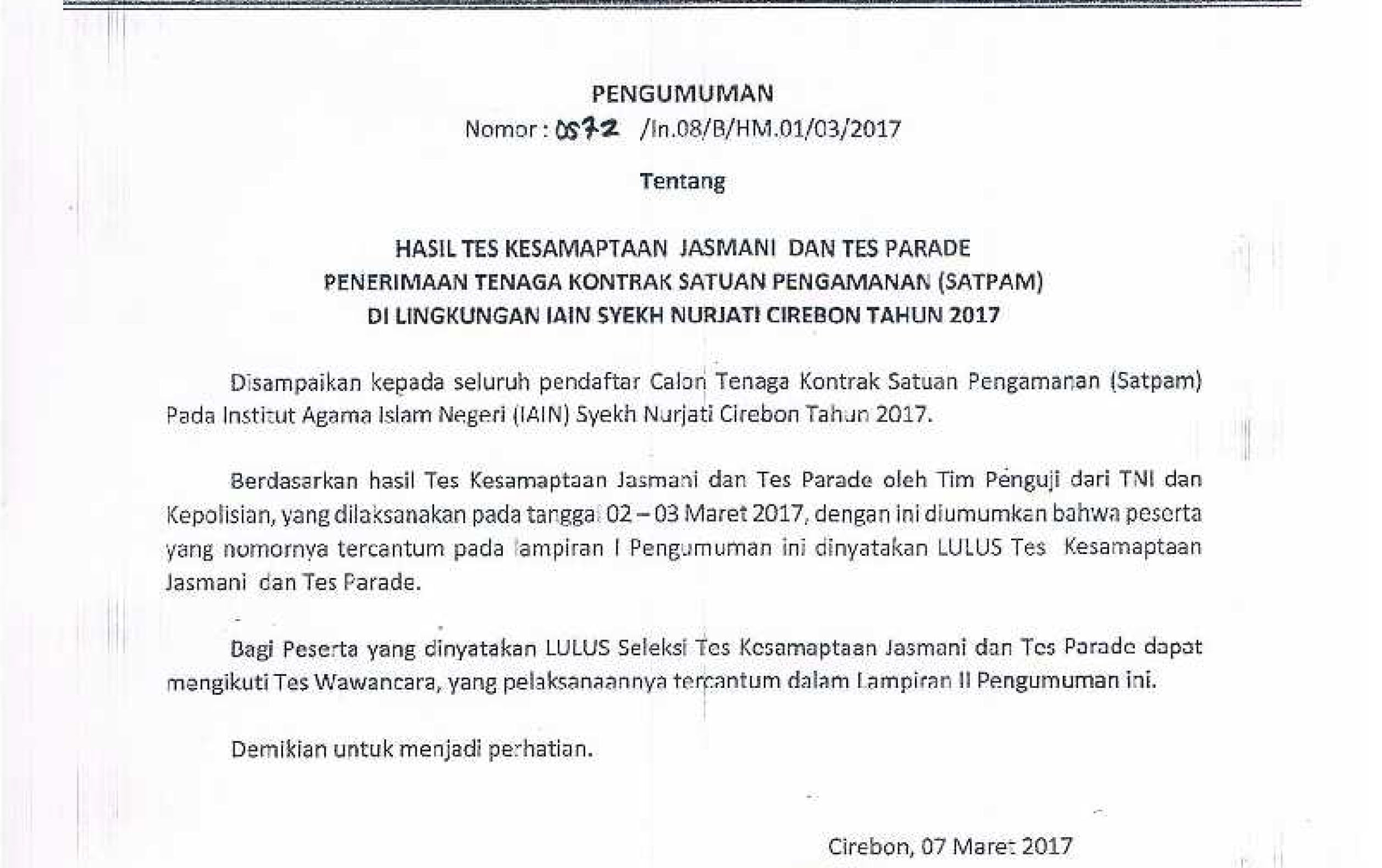 Pengumuman Hasil Tes Kesamaptaan Jasmani dan Parade Tenaga Kontrak SATPAM 7 Maret 2017 arifin Informasi, Kegiatan 0 Humas dan Publikasi
