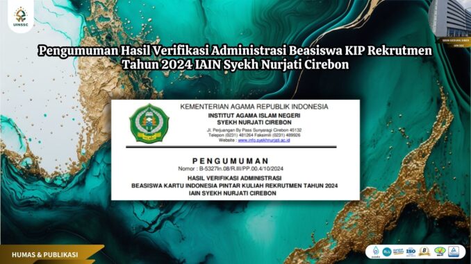 Pengumuman Hasil Verifikasi Administrasi Beasiswa KIP Rekrutmen Tahun 2024 IAIN Syekh Nurjati Cirebon 18 Oktober 2024 arifin Informasi, Pengumuman 0 Untuk Informasi Selengkapnya Silahkan Unduh Link dibawah ini : B-5327_PENGUMUMAN HASIL VERIFIKASI ADMINISTRASI KIPK 2024