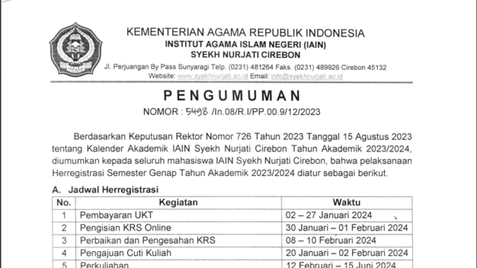 PENGUMUMAN JADWAL HERREGRITRASI SEMESTER GENAP 2023-2024 20 Desember 2023 arifin Pengumuman 0 PENGUMUMAN JADWAL HERREGRITRASI SEMESTER GENAP 2023-2024