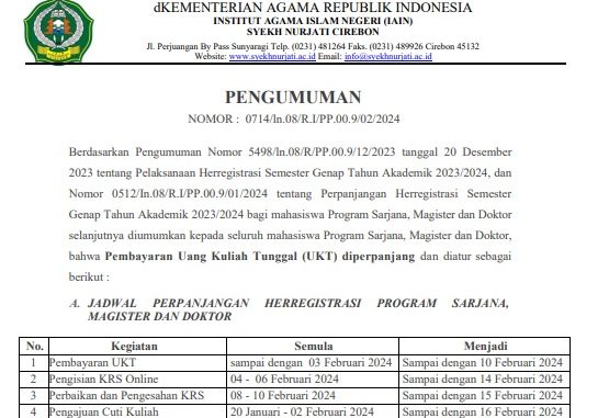 PENGUMUMAN JADWAL PERPANJANGAN HERREGISTRASI PROGRAM SARJANA, MAGISTER DAN DOKTOR 5 Februari 2024 arifin Berita, Informasi 0 Untuk Informasi lebih lanjut unduh tautan dibawah ini : pengumuman KEDUA perpanjangan herregistrasi smt genap 2023 2024