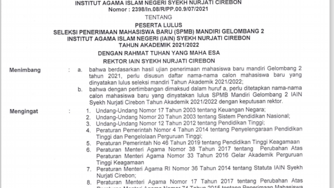 Pengumuman Kelulusan SPMB Mandiri Gelombang 2 28 Juli 2021 arifin Informasi, Pengumuman 0 Unduh Pengumaman Kelulusan SPMB Mandiri Gel. 2 sk kelulusan spmb gel 2 2021 badan litbangDiktikemendikbuddiktiskemenagridplkkndr2021gisbei iain cirebonHumas dan Publikasiiain cirebonIAIN Syekh Nurjati Cirebonippbmm2021ippbmmuinkalijagaippbmmyogyakartaitjenkemenag.go.idkanwiljabarkemenagkemahassiswaankemenagrikemeninfolitbangkemenagriMKTQMTQiaincirebonPanitia Lokal PMB PTKIN 2021pendiskemenagriPMB-PTKIN 2021tax center iain cirebonuin cirebonuinsyekhnurjaticirebonUISSIcirebonUISSIsyekhnurjaticirebonUjian Masuk PTKIN 2021ujian masuk umptkinumptkinumptkin2021vbirohdikemenagri