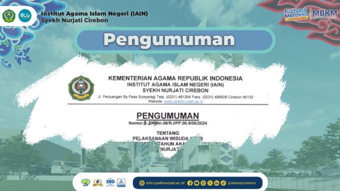 - Cut off pendaftaran untuk wisuda ke-29 melalui https://siak.syekhnurjati.ac.id adalah tanggal 07 Juni 2024;