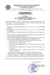 - Pendaftaran online dapat dilakukan pada link https://siak.syekhnurjati.ac.id pada tanggal 08 Mei 2024;