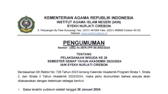 Pengumuman Pelaksanaan Wisuda ke XXVIII Tahun Akademik 2023/2024 15 Februari 2024 arifin Berita, Informasi, Kegiatan 0 Untuk Informasi Selengkapnya Unduh Link dibawah ini : Pengumumuman Pendaftaran Wisuda 28 dan Lampiran_240215_150928