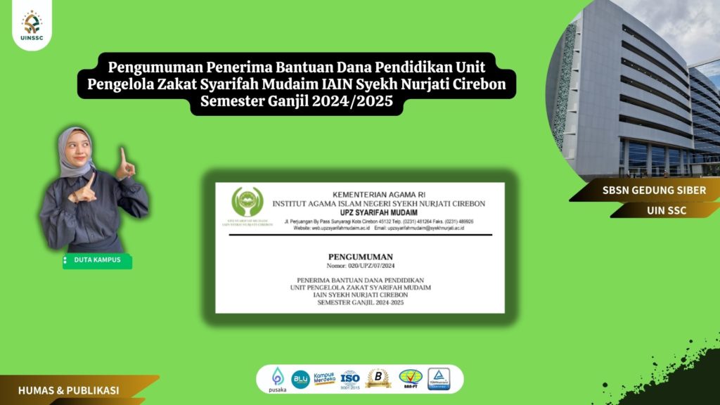 Home » Pos » Informasi » Pengumuman Penerima Bantuan Dana Pendidikan Unit Pengelola Zakat Syarifah Mudaim IAIN Syekh Nurjati Cirebon Semester Ganjil 2024/2025