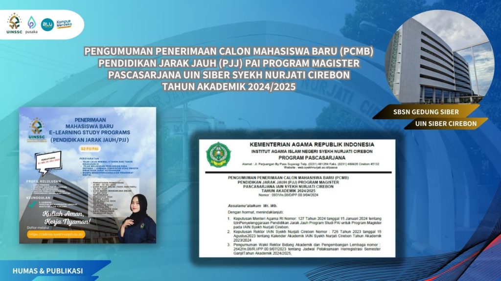 PENGUMUMAN PENERIMAAN CALON MAHASISWA BARU (PCMB) PENDIDIKAN JARAK JAUH (PJJ) PAI PROGRAM MAGISTER PASCASARJANA UIN SIBER SYEKH NURJATI CIREBON TAHUN AKADEMIK 2024/2025