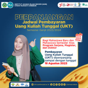 Berdasarkan hasil rapat pimpinan tanggal 14 Agustus 2023 tentang Pembayaran Uang Kuliah Tunggal (UKT) semester ganjil 2023/2024, selanjutnya diumumkan kepada seluruh Calon Mahasiswa Baru dan Mahasiswa Semester Atas Program Sarjana, Magister, dan Doktor, bahwa Pembayaran Uang Kuliah Tunggal (UKT) diperpanjang sampai dengan tanggal 18 Agustus 2023.