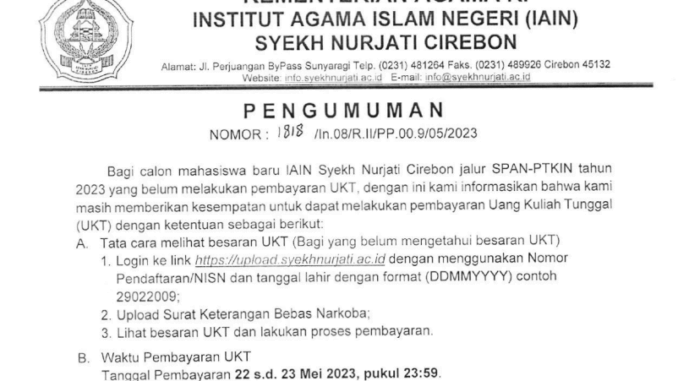 Pengumuman Perpanjangan Pembayaran UKT Jalur SPAN PTKIN Tahun 2023