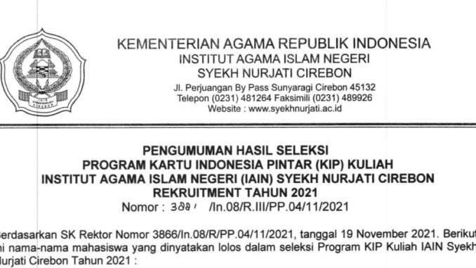 Pengumuman Seleksi Program Kartu Indonesia Pintar (KIP) 23 November 2021 arifin Pengumuman 0 Unduh Pengumuman Pengumuman Hasil Seleksi KIP Kuliah Tahun 2021