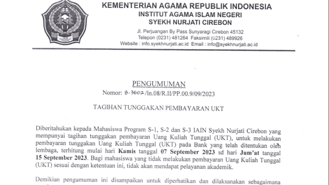 PENGUMUMAN TAGIHAN TUNGGAKAN UKT 6 September 2023 arifin Pengumuman 0 PENGUMUMAN TAGIHAN TUNGGAKAN PEMBAYARAN UKT