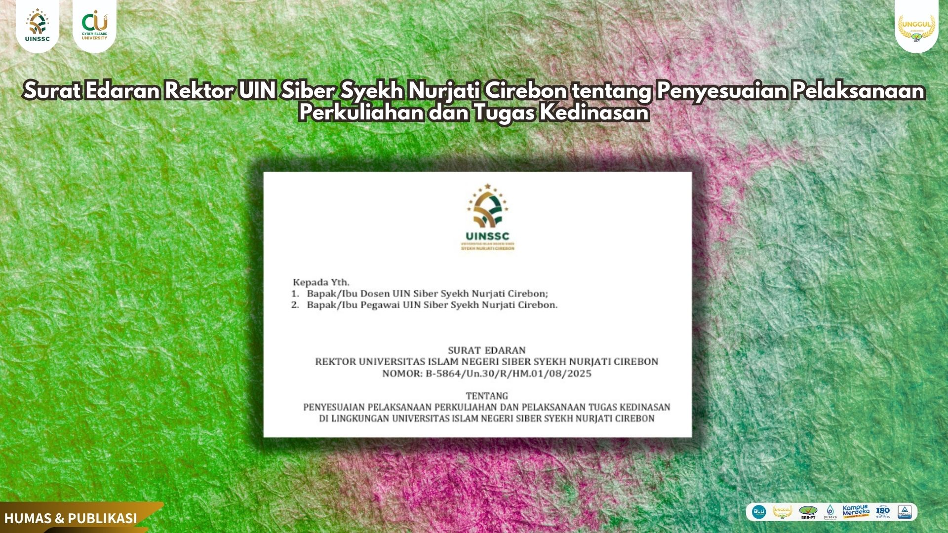 Surat Edaran Rektor UIN Siber Syekh Nurjati Cirebon tentang Penyesuaian Pelaksanaan Perkuliahan dan Tugas Kedinasan 31 Agustus 2025