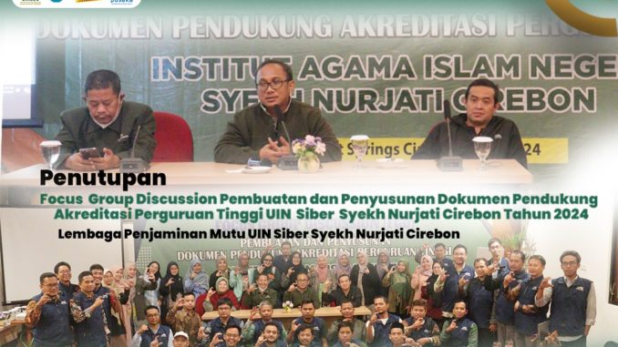 UIN Siber Cirebon (Subang) – Dr. H. Ayus Ahmad Yusuf, M.Si., Kepala Lembaga Penjaminan Mutu (LPM) UIN Siber Syekh Nurjati Cirebon, secara resmi menutup kegiatan Focus Group Discussion (FGD) Pembuatan dan Penyusunan Dokumen Pendukung Akreditasi Perguruan Tinggi yang digelar selama tiga hari di Sari Ater Hotel & Bungalows, Kabupaten Subang. Kegiatan yang berlangsung dari tanggal 3 hingga 5 Juli 2024 ini bertujuan untuk mempersiapkan dokumen pendukung akreditasi yang diperlukan untuk mencapai akreditasi unggul.