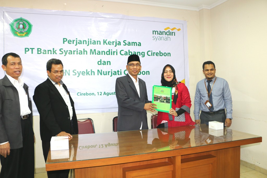 Institut Agama Islam Negeri (IAIN) Syekh Nurjati Cirebon melakukan perjanjian kerjasama dengan Bank Syariah Mandiri Kantor Cabang Cirebon. Kegiatan penandatangan perjanjian kerjasama tersebut bertempat di Gedung Pascasarjana IAIN Syekh Nurjati Cirebon. Senin, (12/08/2019).