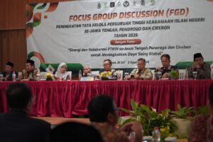 UIN Siber Cirebon (Sarangan) — Dalam upaya memperkuat tata kelola kelembagaan dan meningkatkan daya saing Perguruan Tinggi Keagamaan Islam Negeri (PTKIN) di era global, sejumlah pimpinan dan pengelola PTKIN dari wilayah Jawa Tengah, Ponorogo, dan Cirebon berkumpul dalam kegiatan Focus Group Discussion (FGD) bertajuk:
