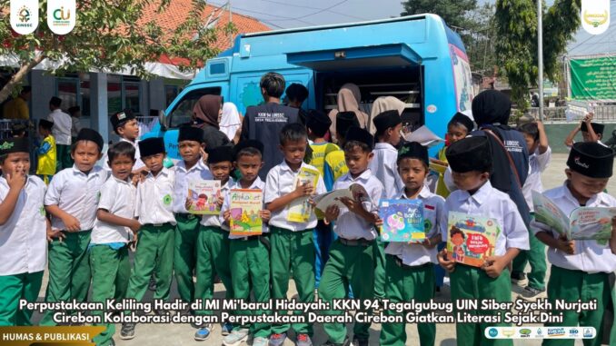UIN Siber Cirebon (Tegalgubug) – Suasana berbeda tampak di Lapangan MI Mi’barul Hidayah, Desa Tegalgubug, Kecamatan Arjawinangun, Kabupaten Cirebon. Hari itu, ratusan siswa tampak antusias menyambut hadirnya Perpustakaan Keliling, hasil kolaborasi antara Kelompok KKN 94 UIN Siber Syekh Nurjati Cirebon dan Perpustakaan Daerah Kabupaten Cirebon, dalam rangka menumbuhkan budaya literasi di kalangan anak-anak sekolah dasar dan madrasah.(05/08).