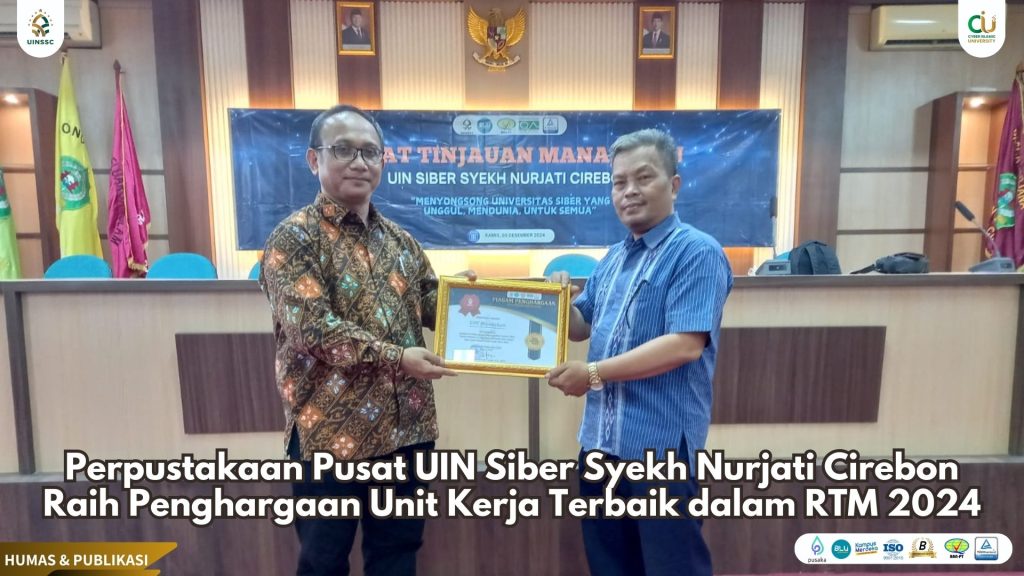 UIN Siber Cirebon – Rangkaian kegiatan Rapat Tinjauan Manajemen (RTM) yang digelar oleh Universitas Islam Negeri (UIN) Siber Syekh Nurjati Cirebon pada Kamis, 5 Desember 2024, menjadi momen istimewa bagi Perpustakaan Pusat universitas ini. Dalam sesi penganugerahan prestasi, UPT Perpustakaan Pusat dinobatkan sebagai Unit Kerja dengan Peringkat Terbaik atas kontribusi dan inovasinya.