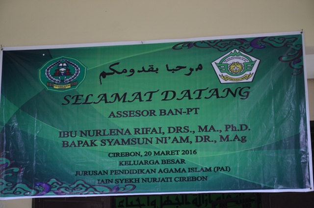 Jurusan Pendidikan Agama Islam (PAI) melakukan Gladi Bersih menjelang acara Visitasi dan Akreditasi Jurusan yang akan dilaksanakan besok Hari Minggu, 20 Maret 2016. Dr. H. Sutejo, M. Ag (Kajur) dan Ahmad Affandi, M. Ag (Sekjur) bersama-sama dengan unsur Dosen dan tenaga administrasi mempersiapkan diri guna lancar dan suksenya acara Visitasi dan Akreditasi Jurusan PAI Tahun 2016. Sementara Tim Assesor BAN-PT yang dijadwalkan datang pada Visitasi dan Akreditasi Jurusan PAI Fakultas Ilmu Tarbiyah dan Keguruan IAIN Syekh Nurjati Cirebon Tahun 2016 adalah Nurlena Rifai, Drs.,MA.,Ph.D dan Syamsun Nia’am, Dr., M. Ag.