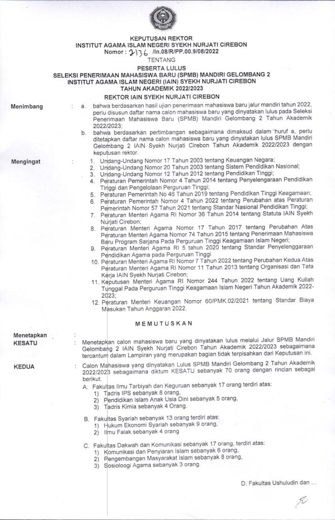 Peserta Lulus Seleksi SPMB Mandiri Gelombang 2 Tahun Akademik 2022/2023 19 Agustus 2022 arifin Pengumuman 0 Download Pdf Dibawah : SK KELULUSAN PESERTA SPMB GEL. 2 TAHUN 2022 spmb mandiri gelombang 2spmbmandiri