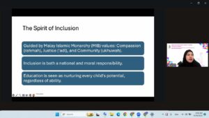 - Nordiana Zakir, Ph.D. (University Brunei Darussalam) sebagai narasumber utama, memaparkan konsep inclusive early childhood education dengan menekankan pentingnya pelatihan guru untuk mengenali dan mengakomodasi perbedaan individu pada anak.