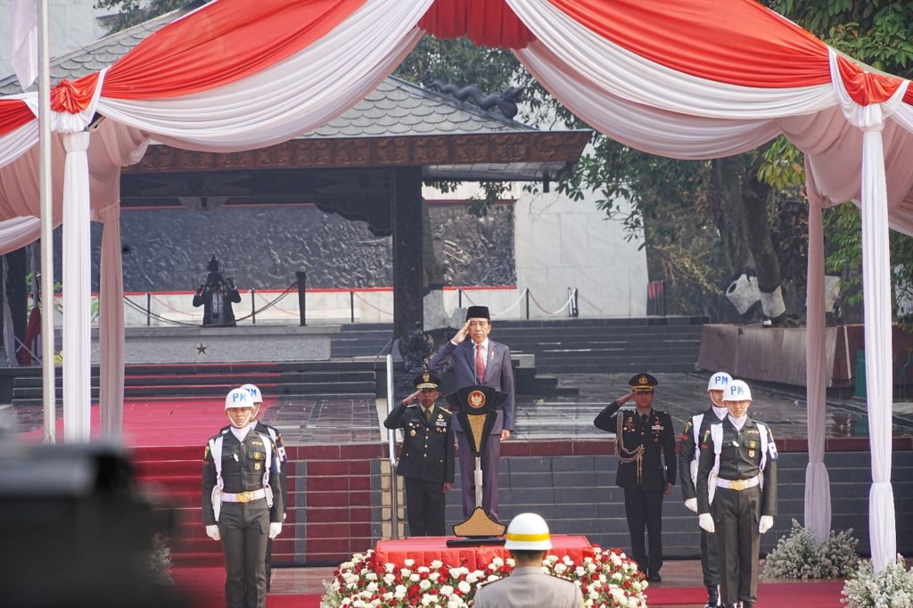 Upacara yang dipimpin Presiden Joko Widodo ini juga dihadiri Wakil Presiden Ma’ruf Amin. Turut hadir mendampingi, Ibu Negara Iriana Jokowi dan Wury Estu Ma’ruf Amin. Tampak hadir para Menteri Kabinet Indonesia Maju, para pimpinan lembaga tinggi negara, Panglima TNI dan Kapolri.