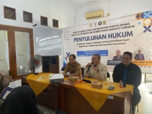 Acara ini dipimpin langsung oleh Ketua PKBH, Ahmad Khoirudin, M.H., dengan didampingi Wakil Ketua Ahmad Dzuizzin, M.H., Sekretaris Jenderal Ahmad Ibrizul Izzi, S.H., M.H., Bendahara Novi Fitriani, S.H., M.H., dan Advokat Mohammad Riski Ramadhan, S.H. Menghadirkan dua narasumber utama, yakni Akhmad Shodikin, S.Ag., M.H.I., Ketua Jurusan Hukum Ekonomi Syariah UIN Syekh Nurjati, dan Hamzah Fansuri, S.H., M.H., acara ini berlangsung produktif dan kondusif.