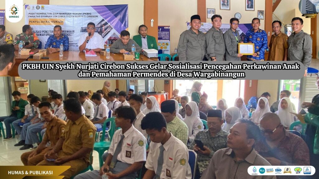 UIN Siber Cirebon – Pusat Konsultasi dan Bantuan Hukum (PKBH) UIN Syekh Nurjati Cirebon sukses melaksanakan sosialisasi mengenai pencegahan perkawinan anak di bawah umur serta pemahaman Peraturan Menteri Desa (Permendes) di Desa Wargabinangun, Kecamatan Kaliwedi, Kabupaten Cirebon. Acara ini merupakan bagian dari program pengabdian masyarakat yang melibatkan tim dosen dan mahasiswa Fakultas Syariah UIN Syekh Nurjati Cirebon, sejalan dengan pelaksanaan tridarma perguruan tinggi. Senin, (28/10/2024).