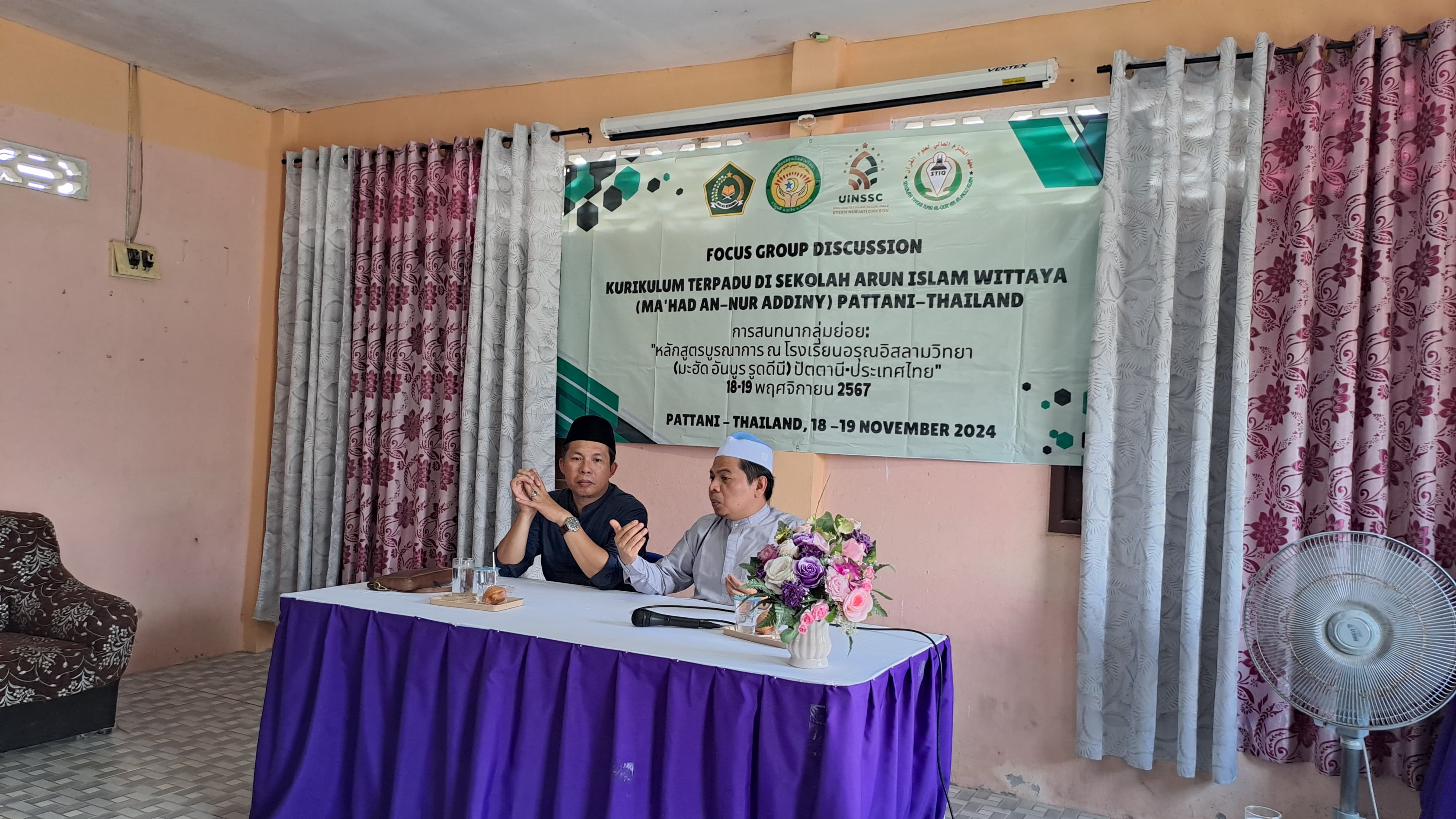 UIN Siber Cirebon (Pattani, Thailand) – Kegiatan Pengabdian kepada Masyarakat (PkM) Kolaborasi Internasional dengan tema “Developing an Integrative Curriculum at Arun Islam Wittaya School in Thailand: A Participatory Action Research for Better Education Quality” di Pattani-Thailand dimulai hari ini. Kegiatan PkM dimulai dengan mengadakan FGD yang diikuti sekitar 20 guru pengampu mata pelajaran agama dan umum di sekolah itu. Acara dibuka dengan sambutan dari pimpinan pondok Ustaz Abdur Razaq, Lc., MA. Dalam sambutannya, Ustaz Razaq menyambut baik pelaksanaan kegiatan PkM ini. “Kami berharap kegiatan PkM Kolaborasi Internasional dosen UINSSC ini dapat memberikan dampak positif bagi kemajuan pendidikan di sekolah yang kami pimpin”, ungkap Razaq. Minggu, (17/11/2024).