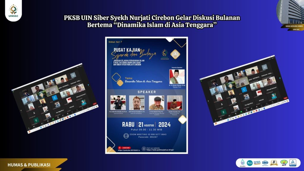 UIN Siber Cirebon – Pusat Kajian Sejarah dan Budaya (PKSB) Jurusan Sejarah Peradaban Islam UIN Siber Syekh Nurjati Cirebon sukses menggelar diskusi bulanan dengan tema “Dinamika Islam di Asia Tenggara”. Acara ini menjadi platform penting dalam memperdalam pemahaman mengenai sejarah dan budaya Islam di kawasan Asia Tenggara, serta mempererat kerjasama akademik antaruniversitas. Rabu, (21/08/2024).