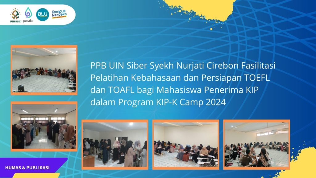 UIN Siber Cirebon – Pusat Pengembangan Bahasa Universitas Islam Negeri (UIN) Siber Syekh Nurjati Cirebon memfasilitasi kegiatan pelatihan persiapan TOEFL dan TOAFL bagi mahasiswa penerima Kartu Indonesia Pintar (KIP) dalam rangkaian Program KIP-K Camp 2024. Program ini bertujuan untuk meningkatkan kemampuan berbahasa Inggris dan Arab mahasiswa penerima KIP angkatan 2022, membantu mereka dalam menempuh pendidikan lebih lanjut, serta meningkatkan daya saing di dunia kerja.