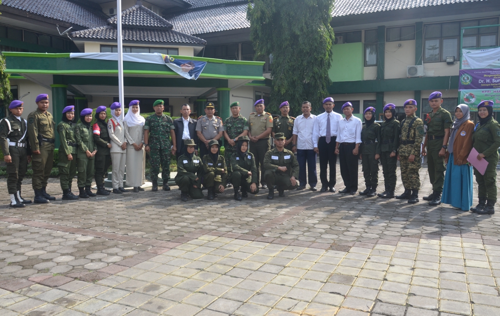 Foto bersama peserta dan tamu undangna pada kegiatan pendidikan dasar Resimen Mahasiswa pada kegiatan Pra Pendidikan Dasar Resimen mahasiswa Batalyon IX Kompi IAIN SYekh Nurjati Cirebon.