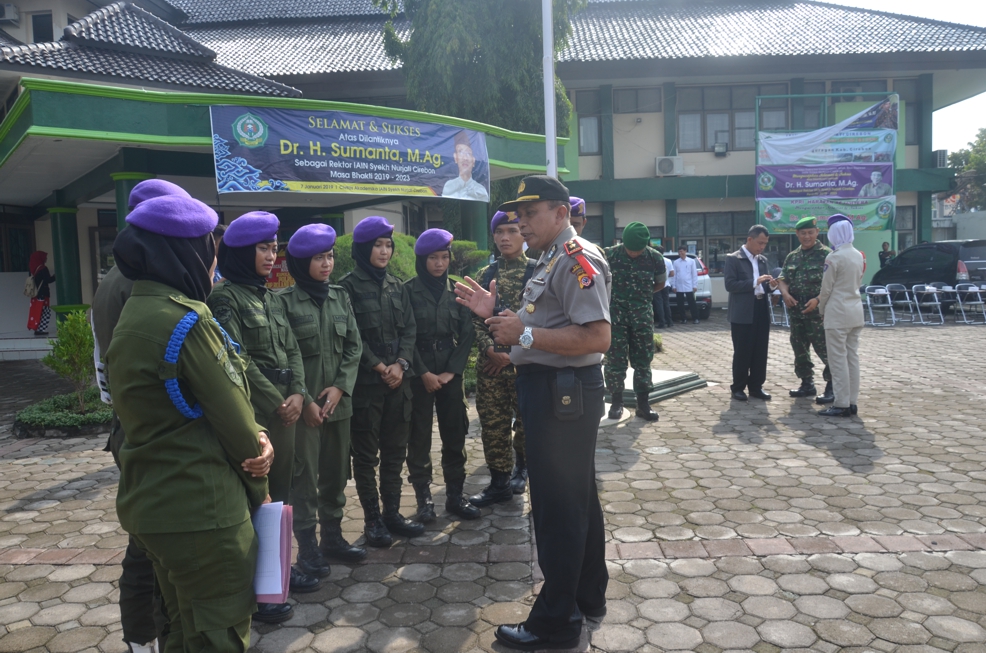Tamu undangan yang hadir pada kegiatan dengan tema “Pra Pendidikan Dasar Resimen mahasiswa Batalyon IX Kompi IAIN SYekh Nurjati Cirebon” di Lingkungan IAIN Syekh Nurjati Cirebon.AKP. H.Ali Mashear, SH (Polres Cirebon) menyampaikan pesan-pesan terkait pendidikan dasar Resimen Mahasiswa pada kegiatan Pra Pendidikan Dasar Resimen mahasiswa Batalyon IX Kompi IAIN SYekh Nurjati Cirebon.