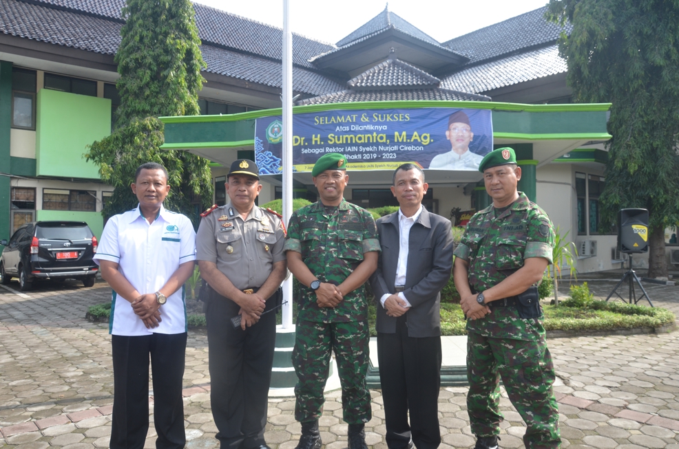 Foto Bersama Drs. Subarja, M.Pd (Kepala Biru AUAK) didampingi Mohamad Arifin, M.Pd.I. (Kasubbag Humas dan Publikasi) dengan AKP. H.Ali Mashear, SH (Polres Cirebon) dan jajaran Kodim Setempat.