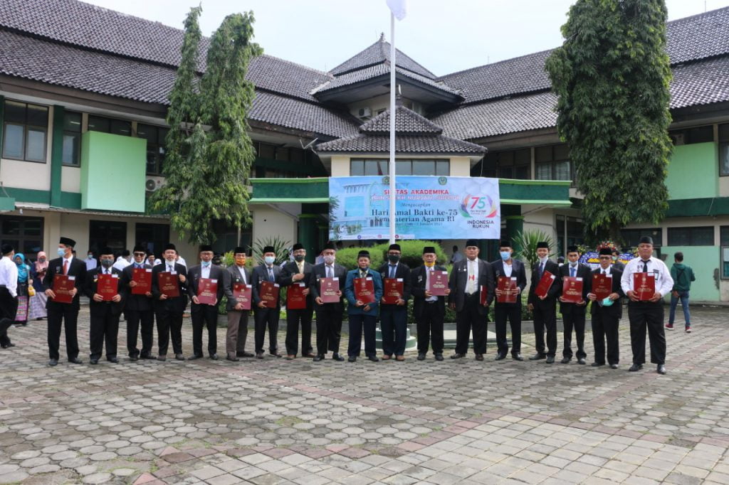 Cirebon, Selasa, 5 Januari 2021 Sivitas Akademika IAIN Syekh Nurjati Cirebon Menggelar Upacara Hari Amal Bakti Kementerian Agama RI ke-75 di halaman Rektorat tepatnya pada pukul 07.30 dipimpin langsung oleh Dr.H. Sumanta, M.Ag (Rektor) sebagai Inspektur Upacara.