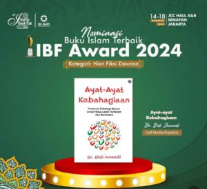 Karya “Ayat-Ayat Kebahagiaan” karya Dr. Didi Junaedi terpilih sebagai salah satu dari sepuluh nominasi dalam kategori Non Fiksi Dewasa, bersanding dengan karya-karya penulis ternama lainnya. Ini merupakan kali pertama karya Dr. Didi Junaedi masuk nominasi Buku Islam Terbaik dalam ajang IBF, sebuah prestasi yang membuatnya terkejut sekaligus bersyukur.