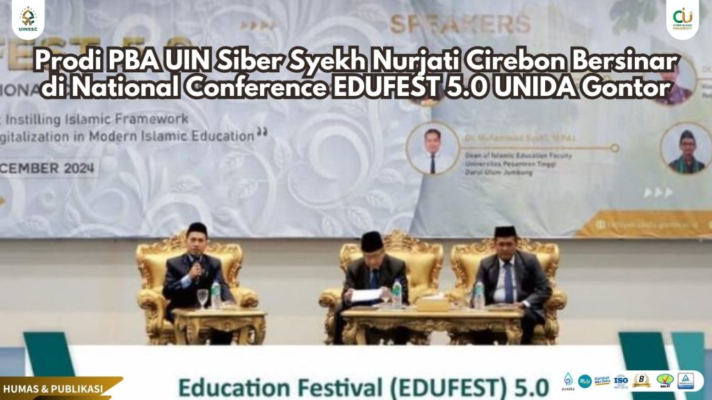 UIN Siber Cirebon (Gontor, Jatim) – Program Studi (Prodi) Pendidikan Bahasa Arab (PBA) Fakultas Ilmu Tarbiyah dan Keguruan (FITK) Universitas Islam Negeri (UIN) Siber Syekh Nurjati Cirebon kembali mencatat prestasi membanggakan dengan berpartisipasi dalam National Conference on Education Festival (EDUFEST) 5.0 yang digelar oleh Fakultas Tarbiyah Universitas Darussalam (UNIDA) Gontor. Acara yang berlangsung pada Senin (16/12/2024) ini mengangkat tema “Pesantren Studies: Instilling Islamic Framework to Incorporating Digitalization in Modern Islamic Education” dan diikuti oleh berbagai perguruan tinggi terkemuka di Indonesia.