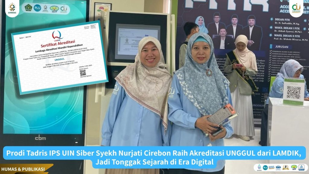 UIN Siber Cirebon — Prestasi gemilang kembali diraih oleh Program Studi Tadris Ilmu Pengetahuan Sosial (IPS), Fakultas Ilmu Tarbiyah dan Keguruan (FITK), Universitas Islam Negeri (UIN) Siber Syekh Nurjati Cirebon atau yang dikenal sebagai Cyber Islamic University (CIU). Prodi ini berhasil meraih peringkat akreditasi UNGGUL dari Lembaga Akreditasi Mandiri Kependidikan (LAMDIK) melalui Surat Keputusan Nomor 553/SK/LAMDIK/Ak/S/V/2025 tertanggal 6 Mei 2025, dengan masa berlaku hingga 5 Mei 2030.