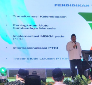 IAIN Cirebon – Prof. Dr. H. Aan Jaelani, M.Ag, Rektor IAIN Syekh Nurjati Cirebon, secara tegas menyatakan bahwa perubahan mendesak terkait digitalisasi perguruan tinggi dan rencana transformasi lembaga menjadi Universitas Islam Negeri Siber Syekh Nurjati Cirebon (UIN SSC), adalah suatu keniscayaan. Pernyataan ini disampaikannya saat megikuti kegiatan Simposium Nasional Digitalisasi Perguruan Tinggi Nahdlatul Ulama (Simposium PTNU), yang diselenggarakan di Hotel Mercure Ancol Jakarta. Selasa, (28/11/2023).
