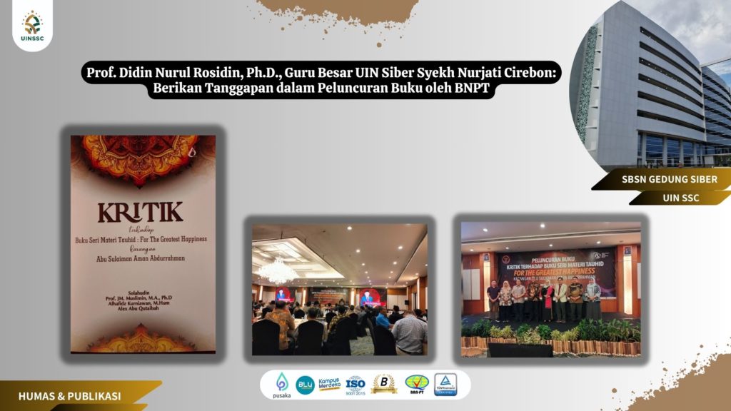 UIN Siber Cirebon (Jakarta) – Guru Besar Sejarah Peradaban Islam IAIN Syekh Nurjati Cirebon, Prof. Didin Nurul Rosidin, Ph.D., menjadi penanggap dalam peluncuran buku berjudul “Kritik terhadap Buku Seri Materi Tauhid For The Greatest Happiness” karya Abu Sulaiman Aman Abdurrahman. Acara ini diselenggarakan oleh Badan Nasional Penanggulangan Terorisme (BNPT) di salah satu hotel ternama di Jakarta. Jum’at, (26/07/2024).