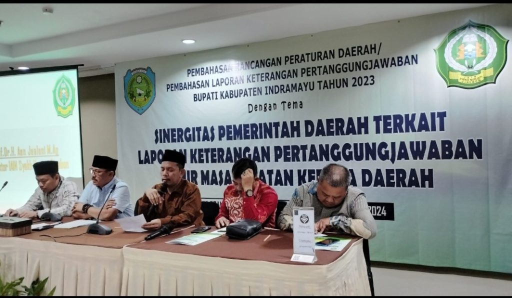 IAIN Cirebon (Indramayu) – Prof. Dr. H. Aan Jaelani, M.Ag., Rektor IAIN Syekh Nurjati Cirebon, didampingi Dr. H. Ayus Ahmad Yusuf, M.Si., Kepala Lembaga Penjaminan Mutu, turut berpartisipasi dalam kegiatan pembahasan Rancangan Peraturan Daerah (Raperda) dan Pembahasan Laporan Keterangan Pertanggungjawaban (LKPJ) Bupati Kabupaten Indramayu Tahun 2023. Kegiatan ini berlangsung pada Kamis, 28 Maret 2024, dengan tema “Sinergitas Pemerintah Daerah Terkait Laporan Keterangan Pertanggungjawaban Akhir Masa Jabatan Kepala Daerah”.
