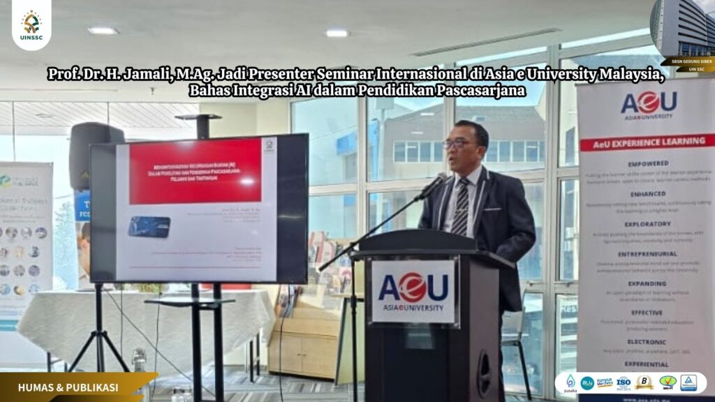 UIN Siber Cirebon (Kuala Lumpur, Malaysia) — Prof. Dr. H. Jamali, M.Ag., Wakil Rektor I Bidang Akademik dan Pengembangan Kelembagaan UIN Siber Syekh Nurjati Cirebon, yang juga dikenal dengan Cyber Islamic University (CIU), hadir sebagai pembicara utama dalam “International Seminar on Artificial Intelligence (AI) in Distance and Digital Education 2024” di Asia e University Malaysia. Pada acara yang digelar pada Kamis, 10 Oktober 2024 tersebut, Prof. Jamali menyampaikan presentasi bertema “Mengintegrasikan Kecerdasan Buatan (AI) dalam Penelitian dan Pendidikan Pascasarjana: Peluang dan Tantangan”.