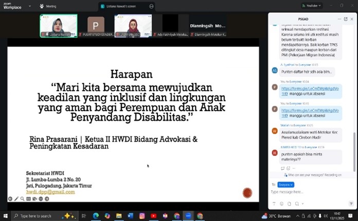 Home » Berita » PSGAD UIN Siber Syekh Nurjati Cirebon Gelar Webinar Nasional Hari Anti Kekerasan terhadap Perempuan 2025 » Webiner PSGAD UIN Siber Cirebon tentang Kampus Ramah Difabel dan Area Aman (2)