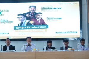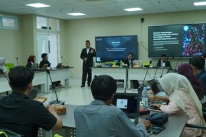 Peserta tidak hanya mendengarkan materi, tapi juga langsung hands-on mencoba berbagai AI tools seperti text-to-video generator, auto-captioning, hingga AI-based photo editor. Diskusi berlangsung interaktif dengan berbagai pertanyaan dan studi kasus dari peserta.