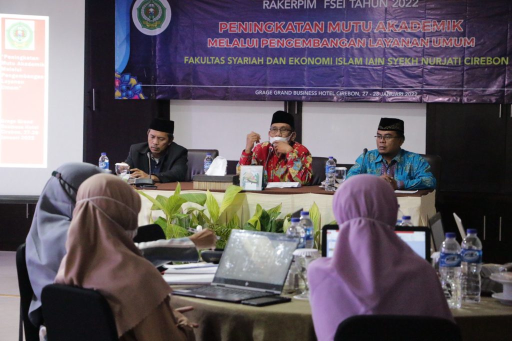 IAIN SYEKH NURJATI CIREBON – Fakultas Syariah dan Ekonomi Islam (FSEI) Institut Agama Islam Negeri (IAIN) Syekh Nurjati Cirebon menggelar rapat kerja pimpinan (Rakerpim) tahun 2022. Kegiatan yang dilaksanakan di salah satu hotel di wilayah Kota Cirebon ini dilangsungkan selama 2 hari dengan bertema “Peningkatan Mutu Akademik Melalui Pengembangan Layanan Umum Pada FSEI”. Kamis-Jumat (27-28/1/2022)