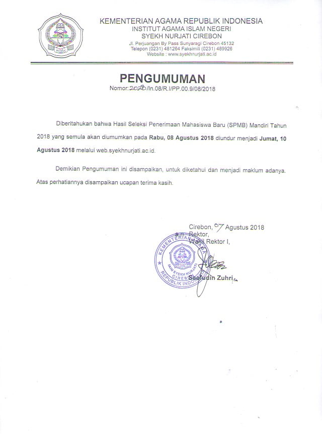 Ralat Pengumuman Kelulusan SPMB Mandiri 2018 7 Agustus 2018 arifin Informasi 0 AkademikPengumumanSPMB