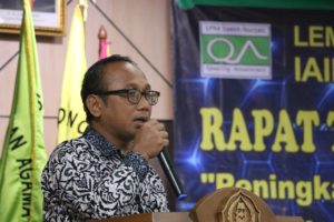 Dr. H. Ayus Ahmad Yusuf, S.E., M.Si. (Ketua LPM) dalam sambutannya menyampaikan terkait pengembangan IAIN Syekh Nurjati Cirebon, sesuai dengan insturksi dari rektor dilakukannya Audit Mutu Internal (AMI) yang mana telah dimuai pada bulan oktober dan akan dilaporkan pada kegiatan RTM dan hasilnya akan menjadi proses evalusi, pengembangan ke depan. “sesuai dengan instruksi dari pak rektor, sebagai clien untuk melakukan audit mutu internal, kami dari LPM mengadakan kegitan AMI dan hasilnya akan disampaikan pada RTM dan hasilnya akan dijadikan bahan evaluasi pengembangan ke depan”.