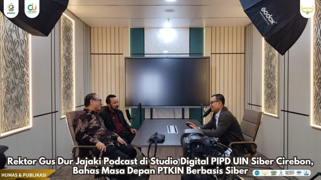 Kunjungan tak berhenti di ruang ujian. Prof. Zaenal juga melakukan lawatan ke Gedung Siber SBSN, pusat infrastruktur utama kampus digital pertama di lingkungan PTKIN tersebut. Di lokasi ini, Prof. Zaenal bersama Dr. Ayus A. Yusuf dan Basiran, M.A. melakukan sesi podcast khusus, membahas tema menarik tentang Pusat Inovasi Pembelajaran Digital (PIPD), salah satu unit pelaksana teknis (UPT) unggulan UIN Siber Syekh Nurjati Cirebon.
